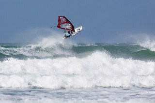 Competition day (92l RRD Twinfin/84l RRD Hardcore Quad and 5.3/4.9 RRD Superstyle) – the wind pretty much did as forecast and picked up all day…until the final… but with the dropping tide this meant we had some pretty decent conditions for most of the comp. I was pretty careless in my first heat, just going for broke and trying to hit the latest possible aerial I could at the end of every wave, resulting in a lot of crashes. This left it pretty close to the mark and put me a bit on edge. Playing it safer in the second heat saw me score a reasonable early wave but then I couldn’t pull it together for the next wave. So for the rest of the heat up until about 20 seconds to go I was struggling with the one good wave and nothing else particularly special. Getting worked for about 4 minutes with no wind to water-start didn’t help matters. This was after they had already abandoned our heat once already. Anyway with about 20 seconds to go I tacked onto a wave, nothing too big but made the most of it, scoring a small aerial right at the end.
