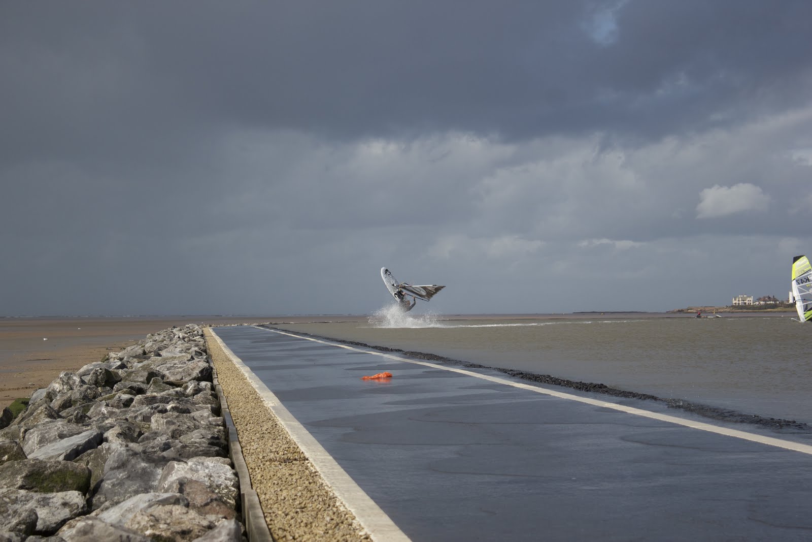 After this we drove North to West Kirby for literally an afternoon/evening session. I’ve never been there before and that spot is truly incredible! I know ‘The Trench’ at West Witterings is also extremely good; super flat, consistant wind and sandy but Kirby has the advantage of working in any tide state. Really it was amazing, like sailing on a swimming pool. Sailing until sunset was the coolest thing as well as you could see the sun setting down the Estuary and the wind just stayed the whole time. If there ever was a place to hold a freestyle windsurfing event then this would be it.