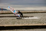 In the double I got pretty unlucky again, I just couldn’t find the gusts on one tack and despite pumping across the whole heat area I couldn’t get planning enough to do anything better then a sliding upwind 360, the worst flaka attempt of my life because I physically didn’t have enough speed to pop the board out the water. Anyway that heat counted for some reason and I lost out bad because I was in that point of the ladder where you lose once and you drop 4 places! Gutted! From then on the wind got worse and worse but the double was completed, just, and Steven won with some impressive moves in really no wind at all. I think EFPT Head Judge Tom Hartmann did a great job at getting the double finished and really had some hard decisions to make when it came down to the final heats, in the end everyone was impressed we finished it and for sure the judges didn’t have an easy time either, there were some really really close heats!