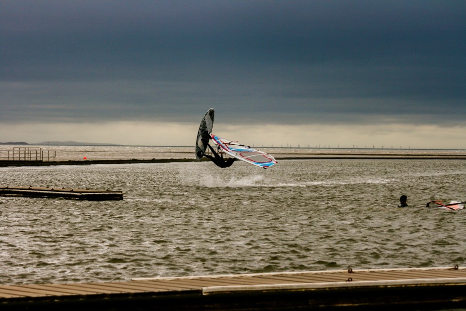 With Fabrizi already two up on me I decided I had to do something about this when it came to the competition as we were head to head in our first heat. I think we’ve sailed against each other once or twice before and he had also beaten me, however, I’d practised one or two moves in the lead up to the competition and managed to land a competition heat that I was happy with. Advancing to the next round I was pretty motivated until I saw Dieter on the ladder… I knew my chances were slim but this was even more so when the wind died in our first attempt at the heat and nobody could really get planning after about 2/3 minutes. Obviously a re-sail was needed as nobody could actually do moves, again the wind was light and gusty and there was a lot of luck as to where you were when the gusts came down. So again we had to re-sail but this time after completing the full heat, but I felt like I’d not had a fair chance at all and it was the right decision. We sailed again, this time I had some time to change to a bigger sail and this time it felt like a fair heat, Dieter still won but I think that switch shaka he did in front of me kind of said it all, good work. So in the end we sailed two full heats against each other.